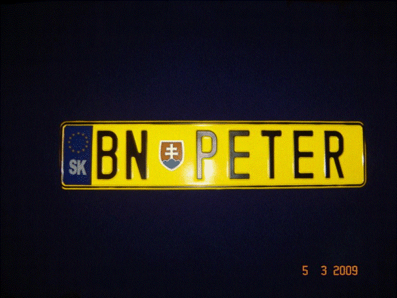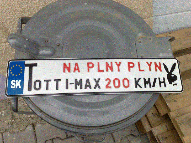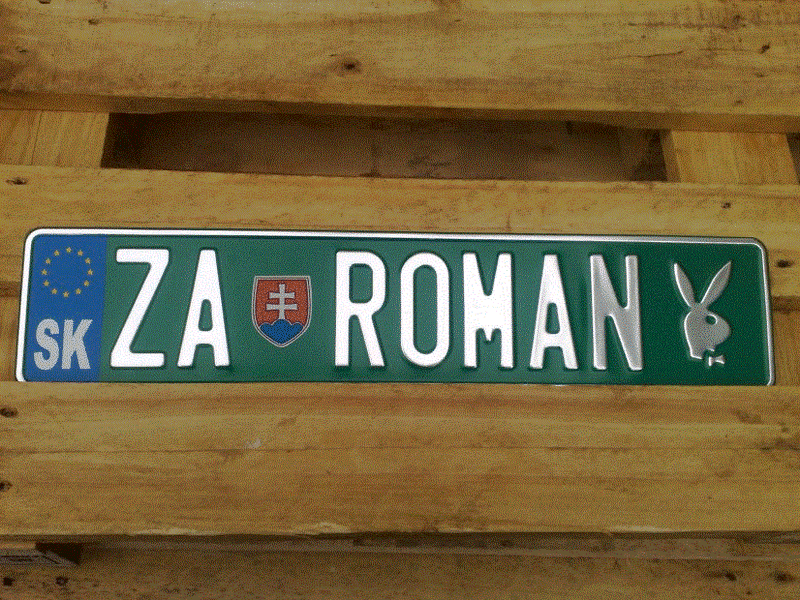 Tabuľky slúžia výlučne na dekoračné a propagačné účely. Za umiestnenie a text dekoračnej tabuľky zodpovedá zákazník. Dekoračná tabuľka nieje kópia evidenčného čísla vozidla.