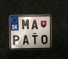 Tabuľky slúžia výlučne na dekoračné a propagačné účely. Za umiestnenie a text dekoračnej tabuľky zodpovedá zákazník. Dekoračná tabuľka nieje kópia evidenčného čísla vozidla.